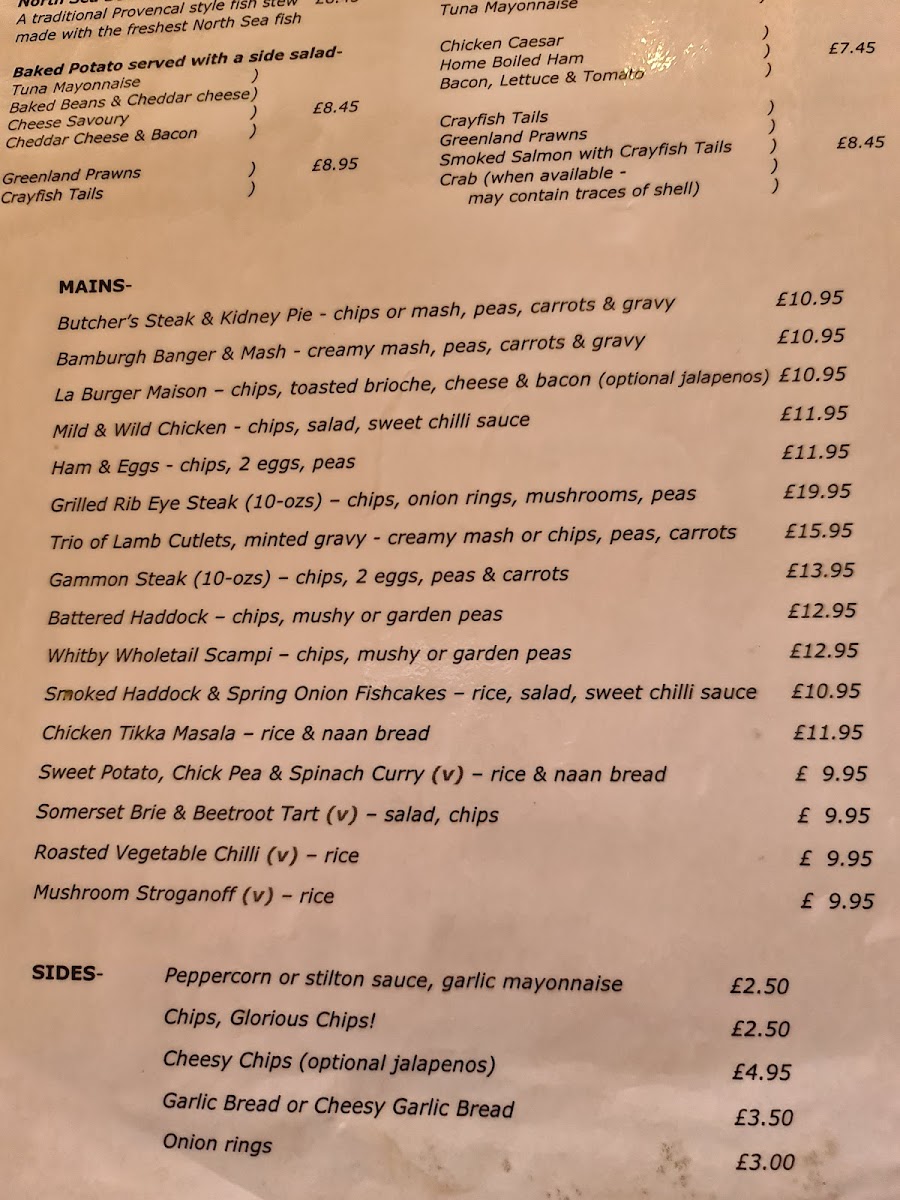 For those with a sweet tooth, the dessert section shines with treats like the indulgent Sticky Toffee Pudding and the decadent Warm Chocolate Fudge Cake, both served with a generous scoop of vanilla ice cream. The Chef's Specials are not to be missed, featuring treasures like Seafood Portuguese Rice and the comforting Fisherman’s Pie.